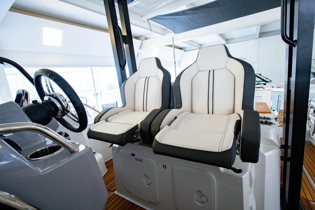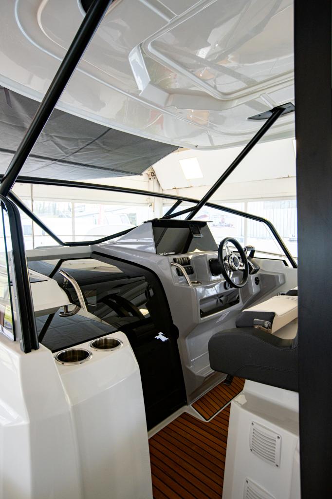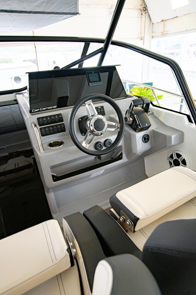 Für ein optimales Fahrerlebnis ist die Cap Camarat mit Bugstrahlruder, Wasserskimast, klappbarem Sonnensegel für Vorschiff und Heck sowie leistungsstarker Navigationselektronik ausgestattet: Garmin GPSMap 1223 xsv, GT15M-IH-Geber, Fusion Apollo RA 670 Audiosystem mit sechs Signature-Lautsprechern, Subwoofer, Verstärker und Bluetooth.