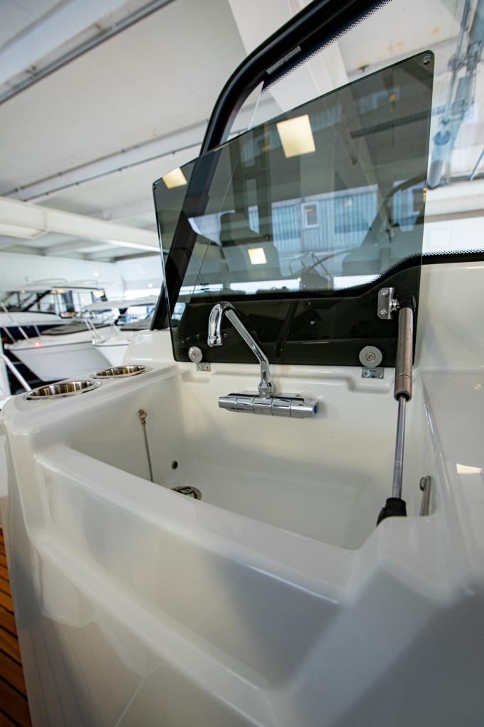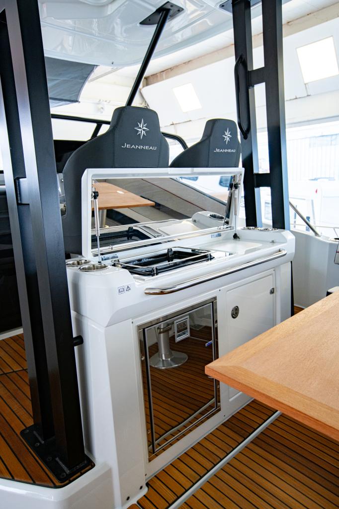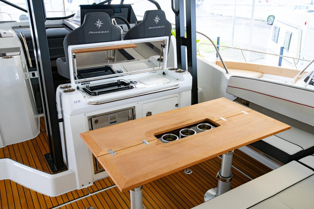 Ankerwinde elektrisch mit Bedienung im Cockpit, Trailer-Anhängerring, Cockpitdusche mit Warm- und Kaltwasser, LED-Lichtpaket für Innen- und Aussenbereich, Pack Ambiance für stilvolles Interieur, Kühlschrank 49 L, elektrische Flaps von LENCO, Decksluke zum Öffnen, Warmwasserboiler, 230-V-Stromkreis mit Ladegerät und Steckdosen, elektrische Deckwaschanlage, Unterwasserbeleuchtung, Plancha-Grillplatte im Cockpit, Aussenkühlschrank mit zusätzlichem Staufach sowie Cockpittisch aus Massivholz, umbaubar zur Sonnenliege.