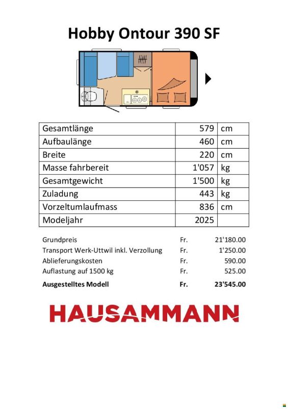 Ablieferungskosten: Innen- und Aussenreinigung, Gasattest, Wasser- und Elektrosystem testen, Hauptstecker, Autobahnvignette (CHF 40.00), MFK, Einlösen, Übergabe an Kunden