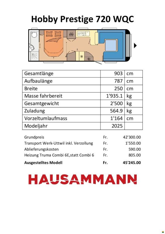 Preis inkl. Transport Werk-CH und Ablieferungskosten
